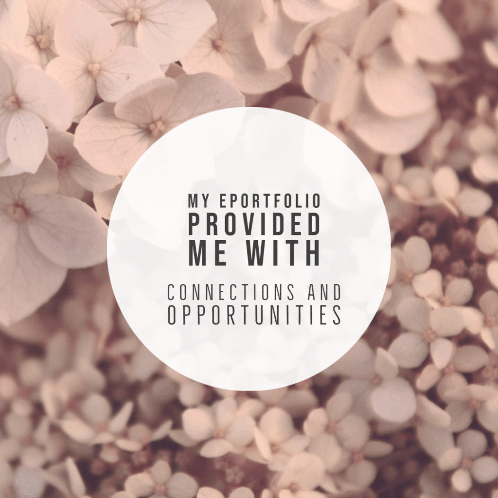Dr. Thibodeaux’s explanation in the “LMD EP30 ePortfolio Why” video emphasizes how creating an ePortfolio is about “who we can connect with” (2020). I absolutely agree! It provides us with great opportunities for connection.