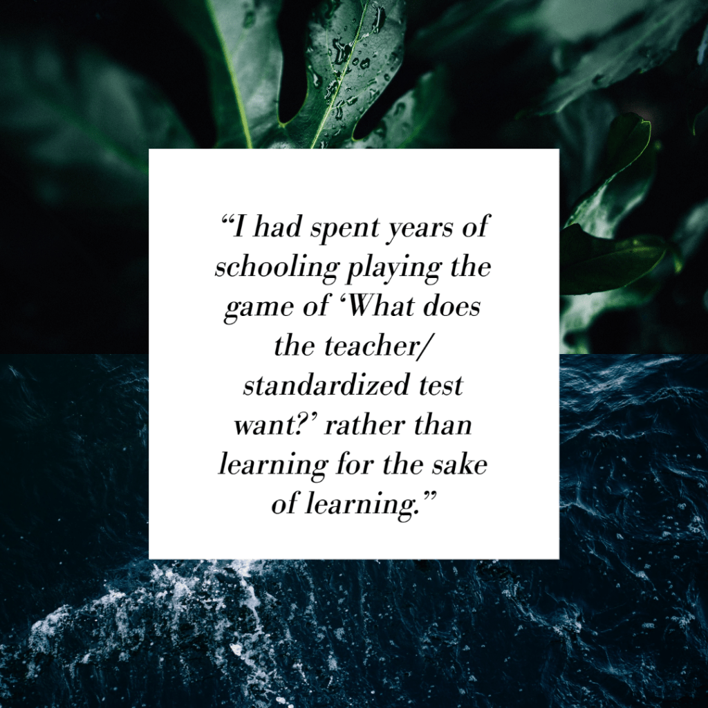 I also found myself relying on other students and in-class time to discuss how the platform program worked, rather than finding relevant Youtube videos and making the learning my own. In part, this could have been because I had spent years of schooling playing the game of “What does the teacher/ standardized test want?” rather than learning for the sake of learning. Our students have likely been trained that way too.