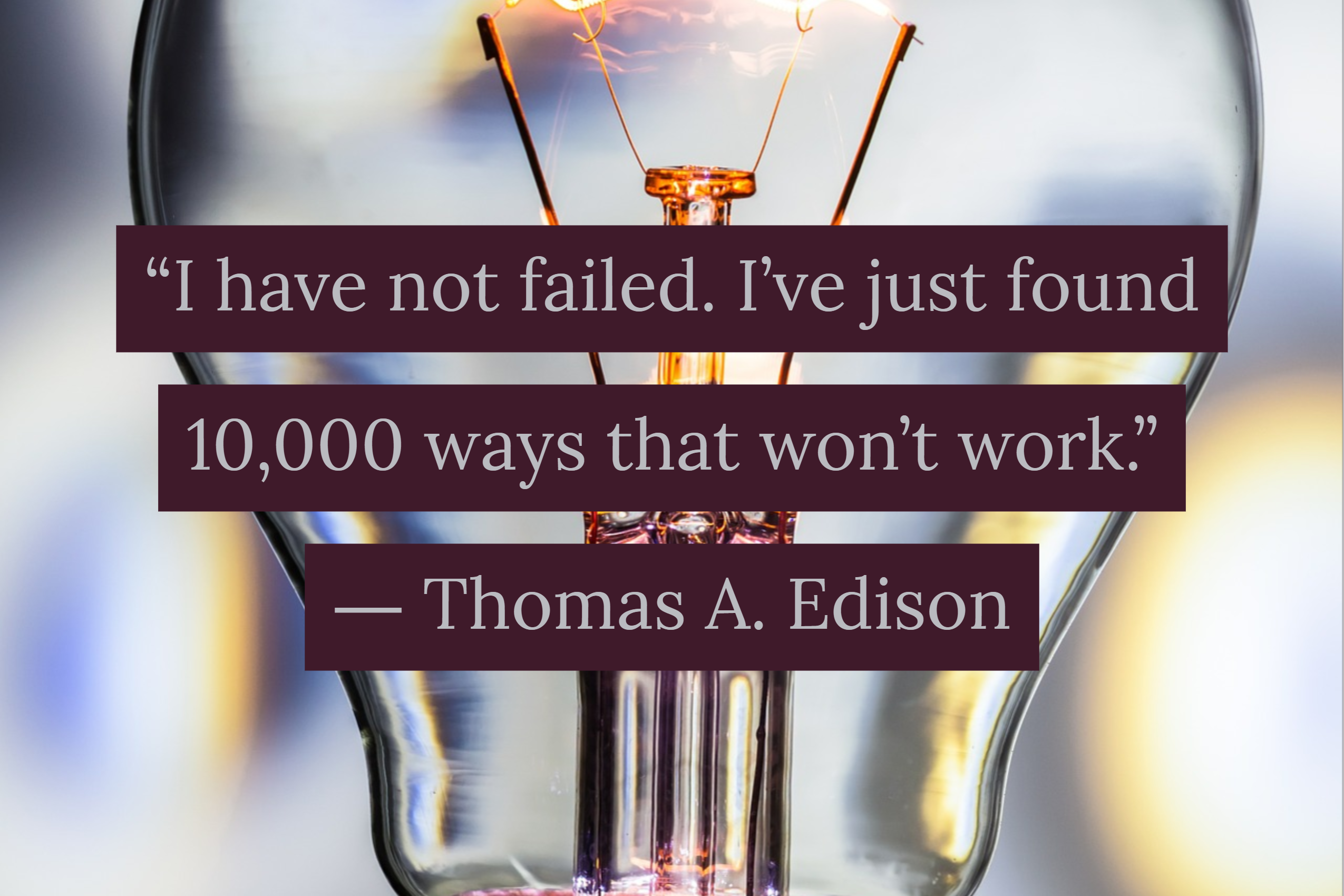 Furr, N. (2011, August 09). How Failure Taught Edison to Repeatedly Innovate. Retrieved July 3, 2019, from https://www.forbes.com/sites/nathanfurr/2011/06/09/how-failure-taught-edison-to-repeatedly-innovate/#535460865e9e